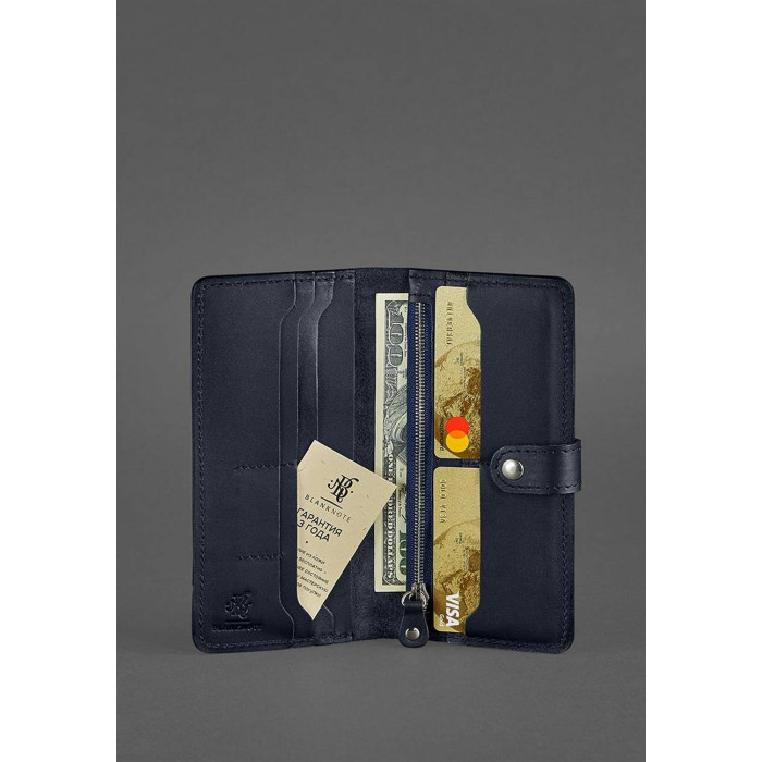 Темно-синій колір аксесуара порадує універсальністю і вишуканістю. Таке портмоне не тільки стане відмінним зберігачем для Ваших фінансів, але і підкреслить Ваш стиль і індивідуальність.