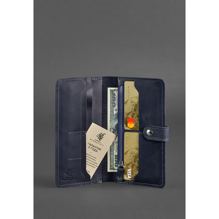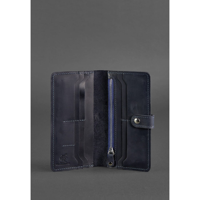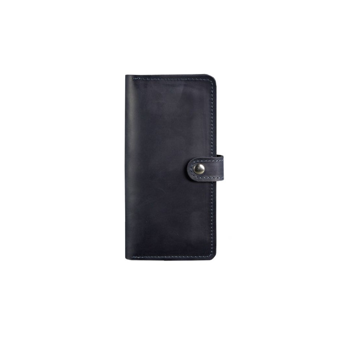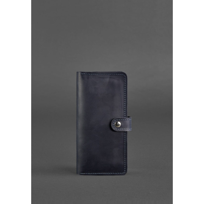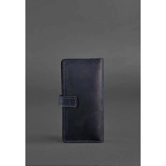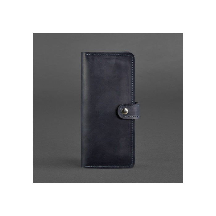 Класичне жіноче портмоне на кнопці, яке можна використовувати як маленький клатч. Темно-синій колір аксесуара в тандемі з вінтажній натуральною шкірою дозволить легко поєднувати портмоне, як з елегантним, так і з повсякденним чином.