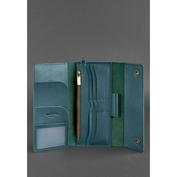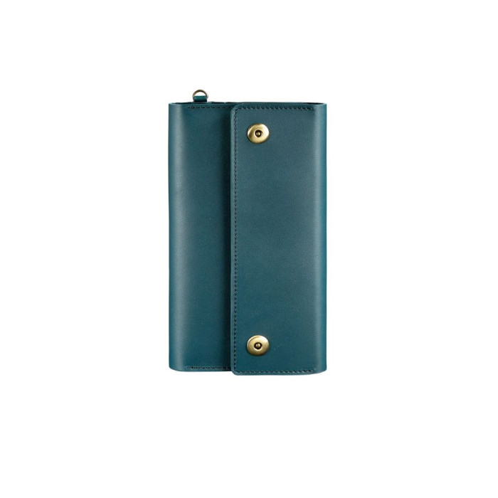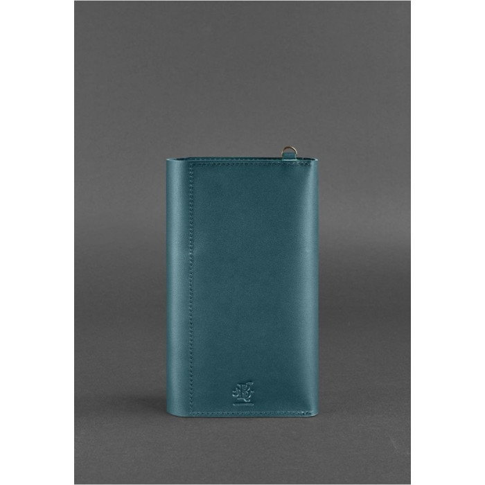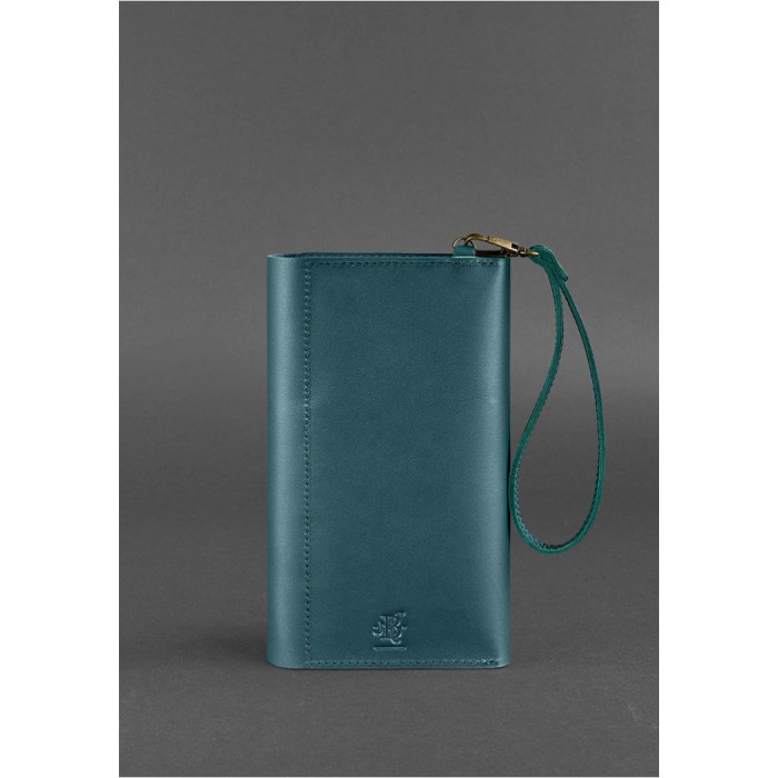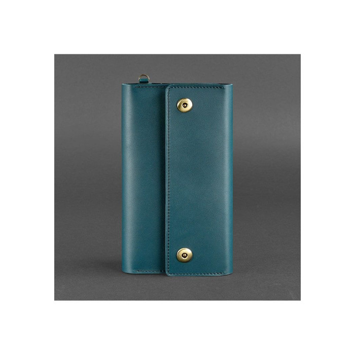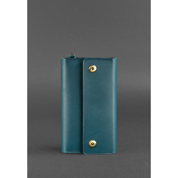 Клатч має спеціальний знімний ремінець, з допомогу якого аксесуар фіксується на кисті руки. Виготовлений клатч з натуральної шкіри в бірюзовому кольорі.