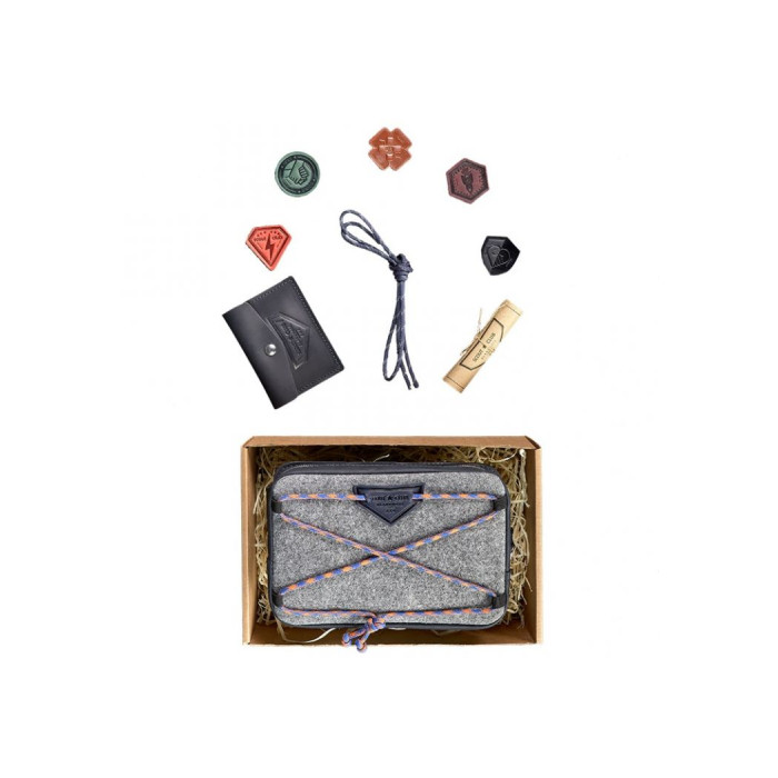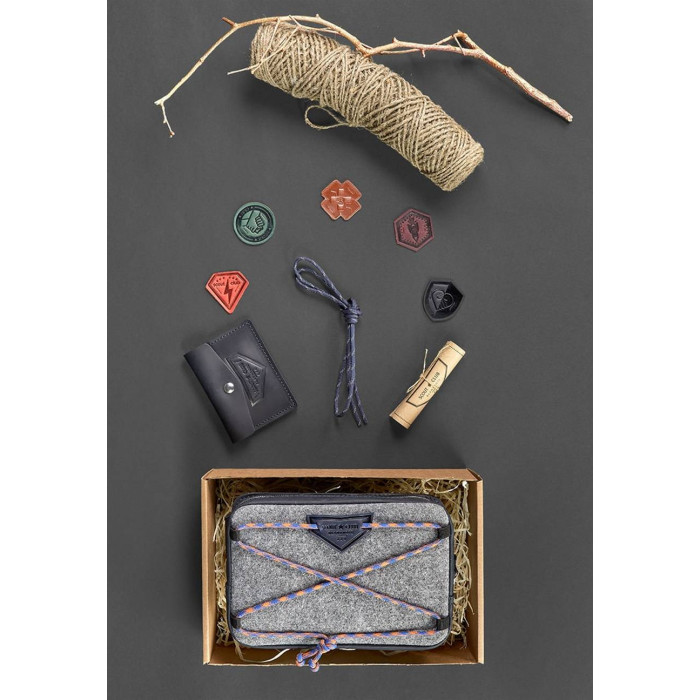 В набір скаута для хлопчика входить напоясная сумка з еко-фетру з шкіряними вставками. Виготовлений аксесуар повністю вручну з якісного італійського фетру,а для вставок використовувалася натуральна шкіра crazy horse. Закривається сумка на міцну металеву блискавку. Довжина поясного ремінця легко регулюється.