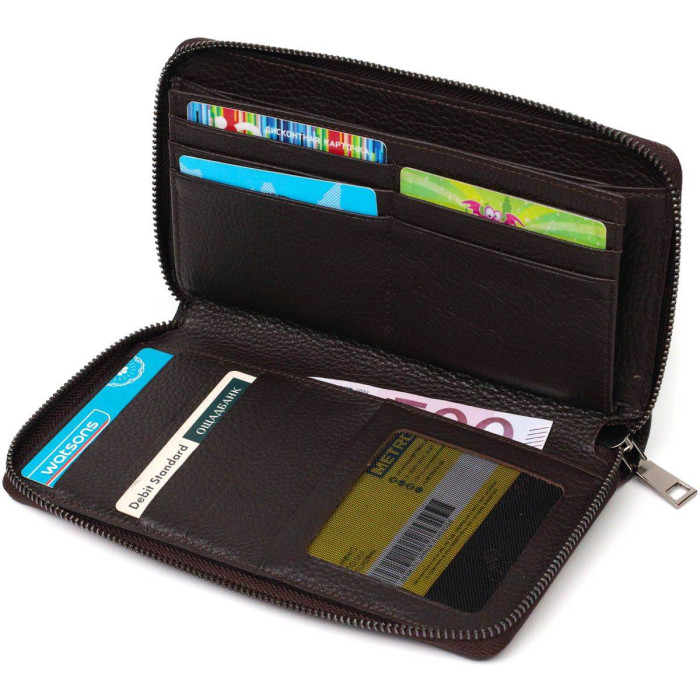Широкий чоловічий клатч із натуральної шкіри з тисненням під крокодила, гаманець закривається на блискавку, всередині можна без проблем розміщувати паперові банкноти, банківські картки та навіть смартфон. Аксесуар складається з двох відділень для купюр, двох прилеглих кишень, сімнадцяти слотів для кредиток та монетниці на блискавці. Є також ручка долоні на тильній стороні клатчу. Продається гаманець у гарній коробці від виробника. Якісний і надійний клатч - саме такий аксесуар повинен бути у кожної людини, що поважає себе.