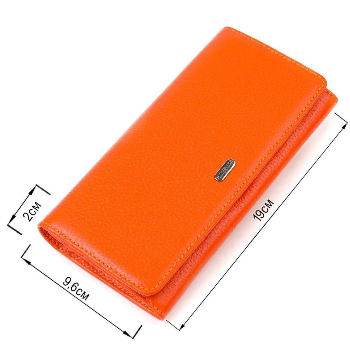 Красивий жіночий гаманець з натуральної шкіри. Аксесуар має три основні відділення, в які поміщаються купюри всіх номіналів, дві перегородки, одна з них на блискавці, одинадцять кишень для карток, одна з яких під сіточкою, монетниця на блискавці зовні та одна прилегла кишеня. Закривається аксесуар клапаном на кнопку. Відмінний аксесуар, надійний виробник, який прослужить дуже довго.