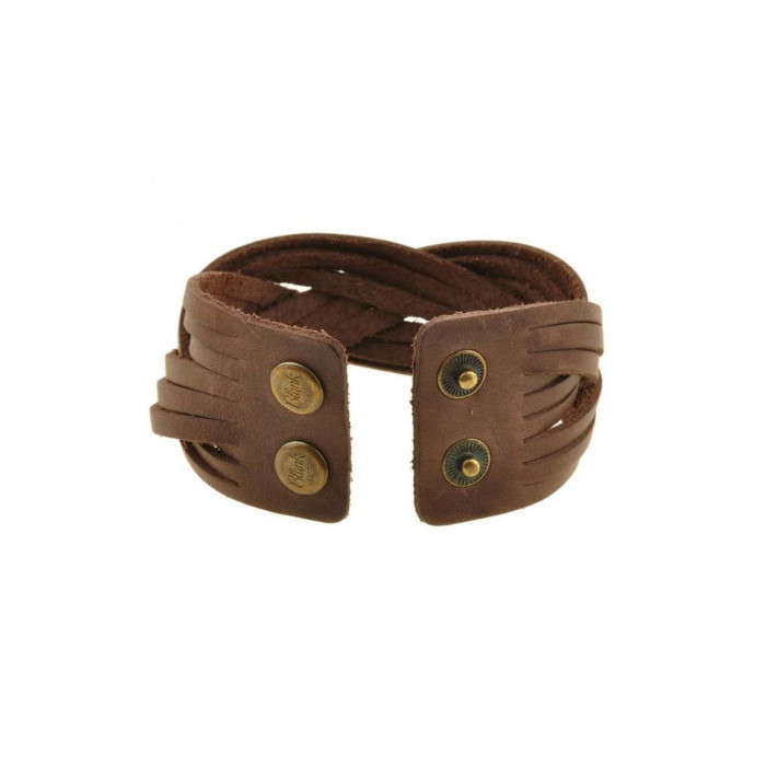 Сам браслет зроблений з переплетенням, стилізованим під косичку і закривається на дві кнопки.
