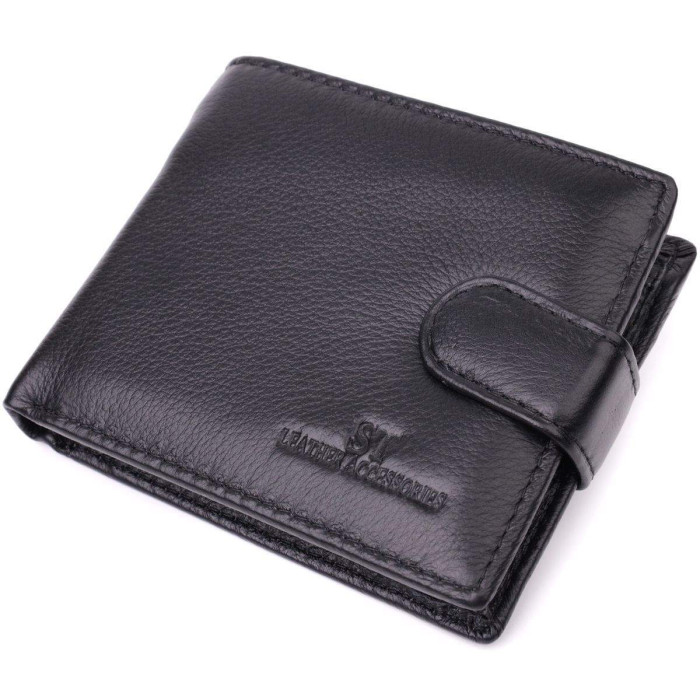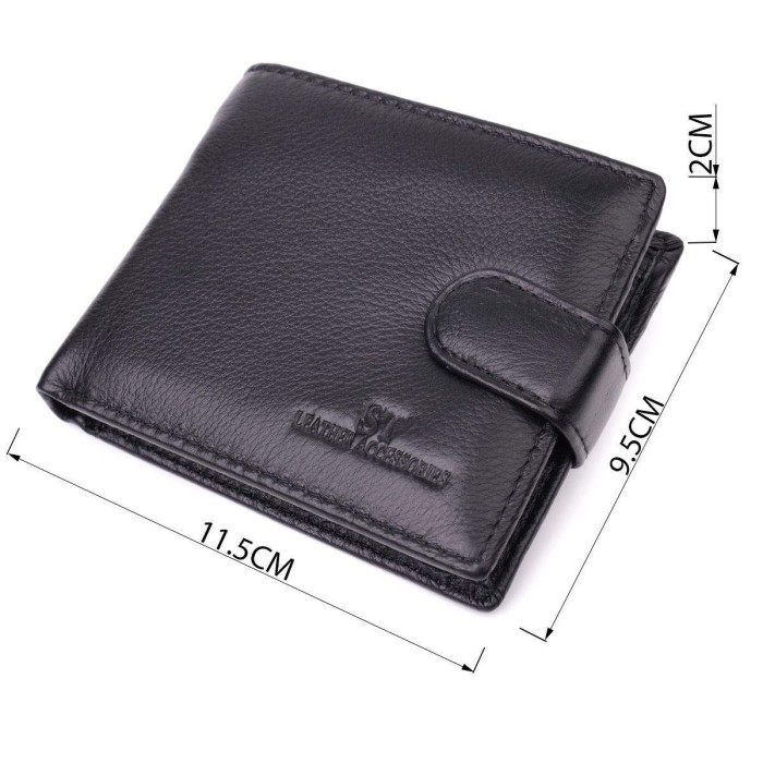 Чоловіче портмоне горизонтального типу, прикрашене тисненим логотипом виробника на лицьовій стороні. Аксесуар з натуральної шкіри, він складається з двох відділень для купюр, кишені на блискавці, трьох осередків для карт, двох прихованих кишень та кишені для монет. Портмоне доповнено надійною фурнітурою та міцною підкладкою, закривається навпіл, хлястиком на кнопку. Шкіряний та якісний аксесуар на подарунок, це завжди дуже хороша ідея.