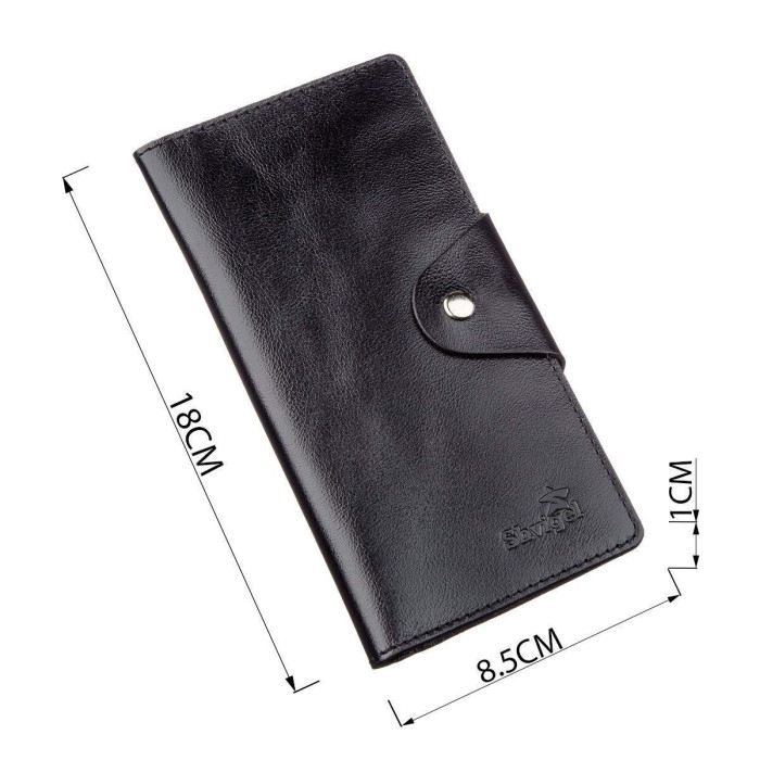 Чоловічий шкіряний гаманець виконаний в класичному чорному кольорі. М'яка і приємна шкіра з природним властивим їй запахом. Аксесуар має високу зносостійкість і не вибагливий у догляді. Ні для кого не секрет, що вироби з натуральної шкіри носяться набагато довше, ніж із замінника або текстилю. Дуже солідний дизайн з тисненим логотипом бренду на лицьовій стороні. Закривається модель на хлястик з кнопками (ближню або дальню). Особливістю моделі є те, що ви самостійно регулюєте її наповненість, закриваючи його на одну з кнопок. Модель доступна в різних кольорах і типах шкіри і стане прекрасним подарунком з будь-якого приводу.