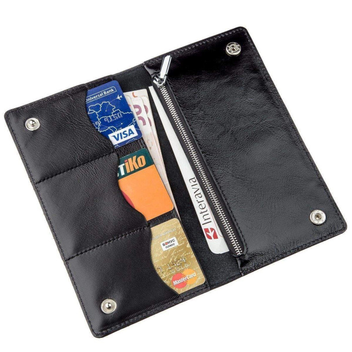 Чоловічий гаманець з натуральної шкіри з гарним блиском. Зручно лежить в руці і має простий і функціональний дизайн. Кишеньку на блискавці при бажанні ви можете використовувати для дрібниць. З таким аксесуаром ваші кошти завжди будуть у безпеці. Аксесуар м'який і приємний на дотик з природним запахом натуральної шкіри. Купюри в гаманець поміщаються в розгорнутому вигляді. Закривається гаманець на дві кнопки всередині аксесуара. Виріб легко поміститься в сумку і однозначно порадує свого володаря.