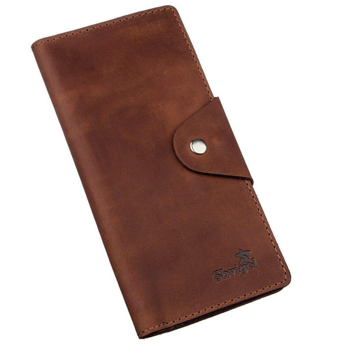 Гаманець з натуральної вінтажної шкіри. Застібається на хлястик з кнопками. Модель має матове покриття. Досить оригінально виглядає. Багатий зовнішній вигляд. Зверху прошитий рівним рядком в дизайн виробу. Має строгий витриманий дизайн в класичному стилі. Аксесуар відмінно підкреслить ваш статус. Не займає багато місця. Тонкий і одночасно місткий. Буде чудовим подарунком. Гаманець має високу зносостійкість до потертостей і тріщин. Модель доступна в різних кольорах і типах шкіри. Ми впевнені, що гаманець здивує свого власника.