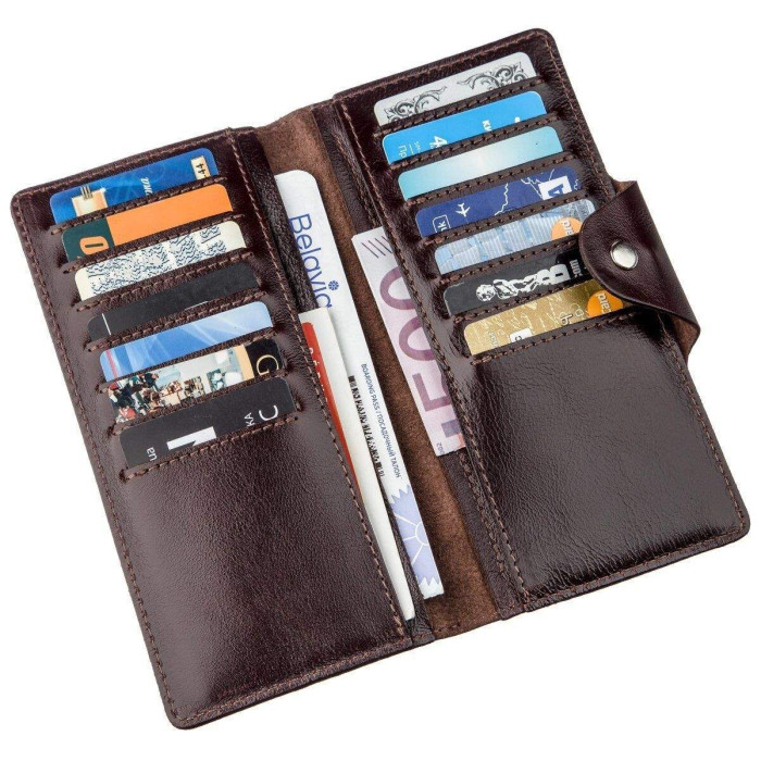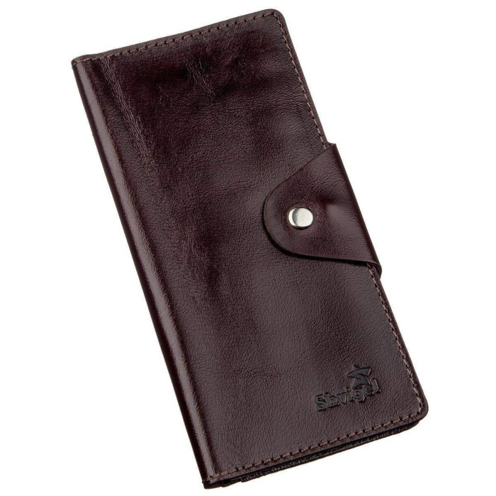 Гаманець з натуральної шкіри класичного коричневого кольору. Застібається на хлястик з кнопками. Модель має глянсове покриття. Досить оригінально виглядає. Багатий зовнішній вигляд. Зверху прошита рівним рядком в дизайн виробу. Має строгий витриманий дизайн в класичному стилі. Ідеально підійде для тих, хто любить стиль і оригінальність. Не займає багато місця у вашій сумці. Тонкий і одночасно місткий. Буде чудовим подарунком. Гаманець має високу зносостійкість до потертості і тріщин. Модель доступна в різних кольорах і типах шкіри. Ми впевнені, що гаманець здивує свого власника.