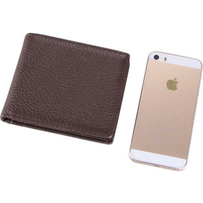 Надійний чоловічий гаманець коричневого кольору. Аксесуар виконаний з натуральної високоякісної фактурної шкіри. Аксесуар упакований в білий пилозахисний мішок.