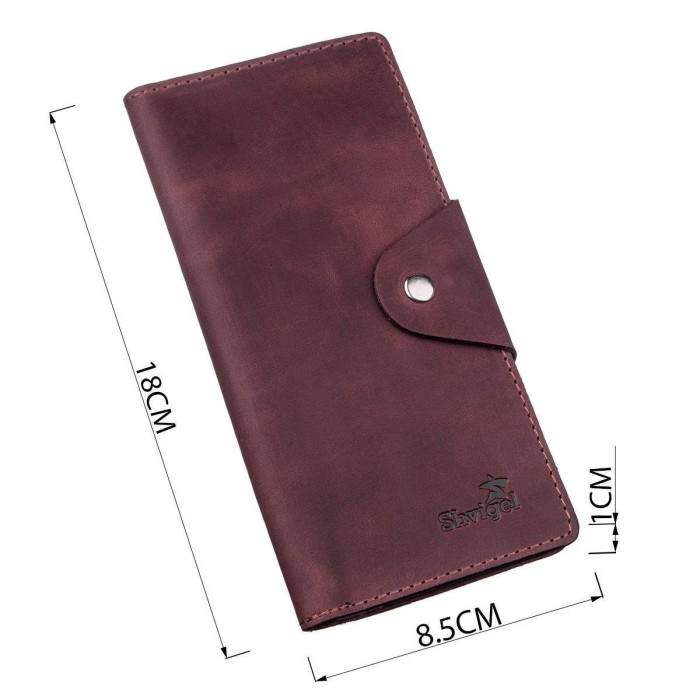 Гаманець з натуральної вінтажної шкіри оригінального бордового кольору. Застібається на хлястик з кнопками. Модель має матове покриття. Досить оригінально виглядає. Багатий зовнішній вигляд. Зверху прошита рівним рядком в дизайн виробу. Має строгий витриманий дизайн в класичному стилі. Ідеально підійде для тих, хто любить яскравість і оригінальність. Не займає багато місця у вашій сумочці. Тонкий і одночасно місткий. Буде чудовим подарунком. Гаманець має високу зносостійкість до потертостей і тріщин. Модель доступна в різних кольорах і типах шкіри. Ми впевнені, що гаманець здивує свого власника.