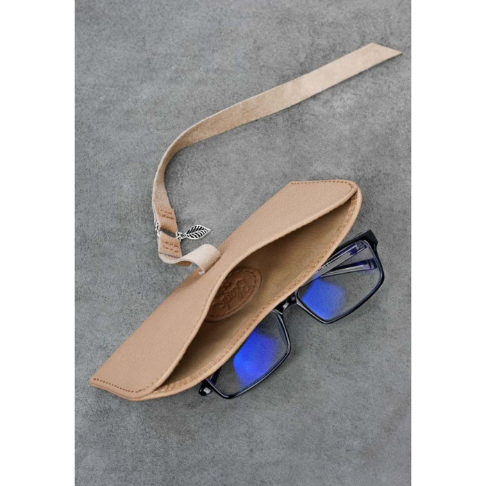 Але саме чудове – чохол вірно захищає окуляри від зовнішнього впливу. Його можна сміливо кидати в торбу і не переживати, що ключі або інші предмети поцарапають лінзи або глянсову поверхню оправи. Додатковий бонус – довгий хлястик, який запобігає випадкове розкриття. Як бачите, наші майстри продумали все до найдрібніших деталей!