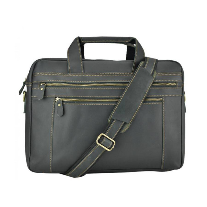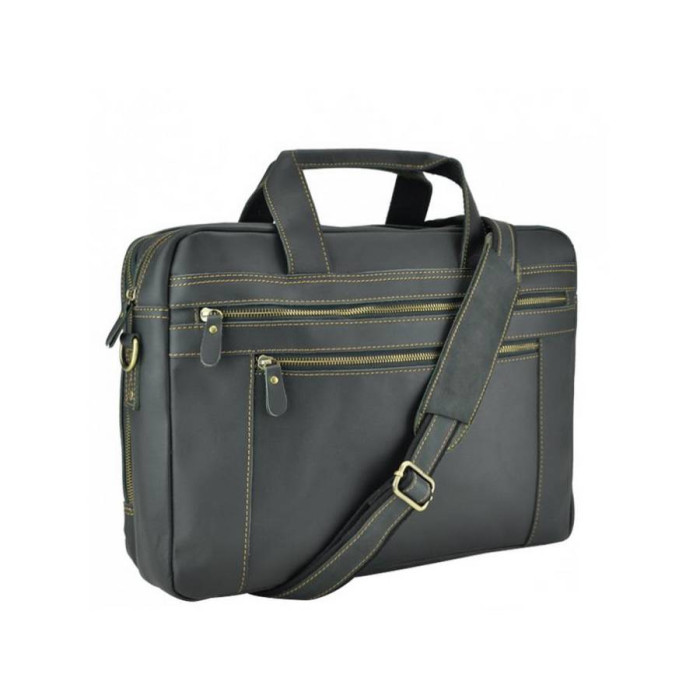 Чоловіча сумка від Tiding Bag в вінтажному стилі відмінний варіант для ділових чоловіків, яким потрібно мати при собі ноутбук, щоденник і не одну папку з паперами. Сумка для ноутбука зроблена з кінської шкіри, доповнена металевою фурнітурою. Має 2 основних відділа різних за розміром, обидва на змійках. З лицьового боку велика кишеня. Всередині портфеля є відсік для ноутбука і безліч кишень-органайзерів для канцелярії. У сумки є анатомічні короткі ручки для носіння сумки в руці і широка наплічна шлейки, також виготовлена зі шкіри та регульована по довжині. З тильного боку розташований фіксатор для кріплення портфеля до дорожньої валізи. Представлена модель стане незамінним аксесуаром для роботи, відряджень і подорожей.