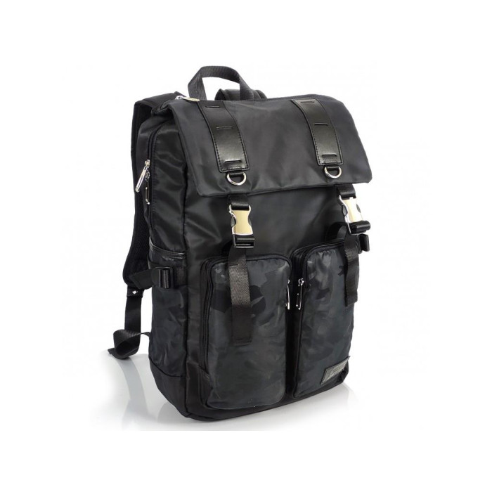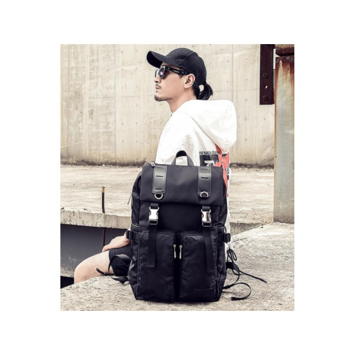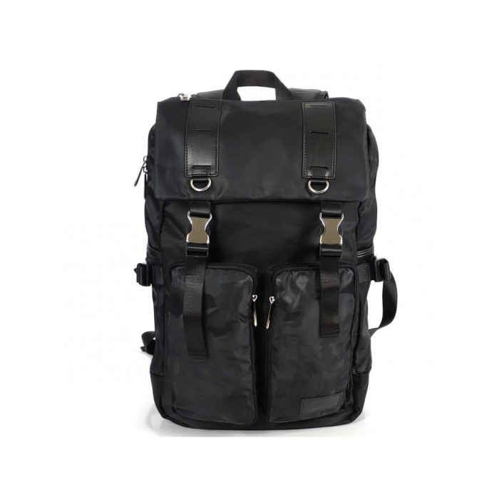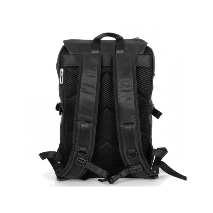 Чорний великий рюкзак Tiding Bag BPT01-CV-174254-1A з клапаном виконаний з текстилю і має розміри 30 x 45 х 12 см. Рюкзак має одне основне відділення на блискавці і клапани, що додатково фіксуються, на застібки.