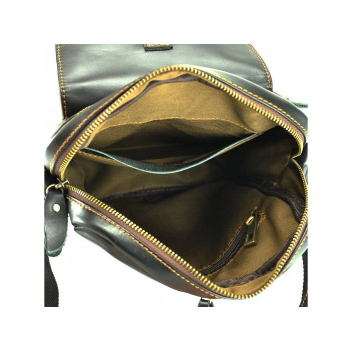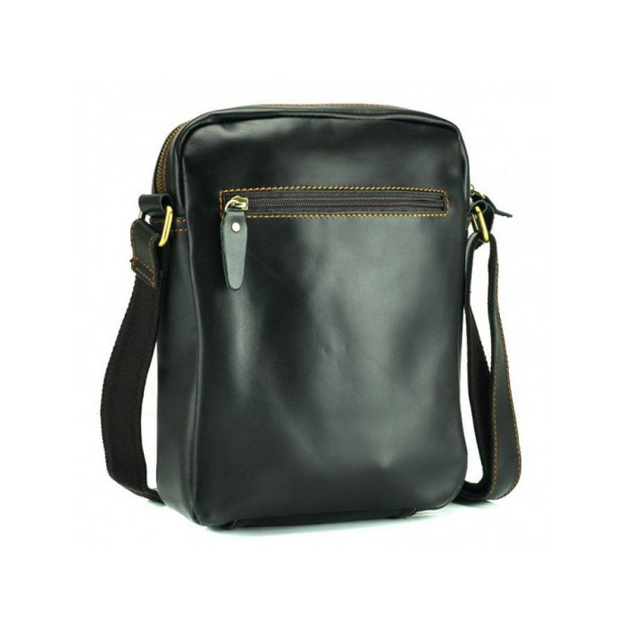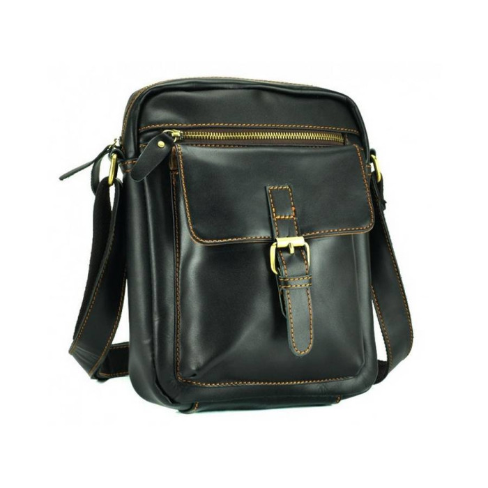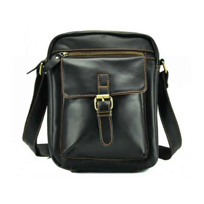 Чоловіча сумка від Tiding Bag в стилі кежуел виготовлена з натуральної шкіри. Мессенджер відрізняється оригінальним дизайном, виконаний в чорному кольорі з гладкою телячої шкіри, декорований бронзовою фурнітурою і прострочкою шовковою ниткою. Інноваційний спосіб обробки шкіри забезпечує стійкість до погодних умов - опадів, перепадів температур. Під накидним клапаном з пряжкою і магнітної кнопкою розташований містка об'ємна кишеня на змійці. Така сумка на плече ідеально підійде на кожен день.
