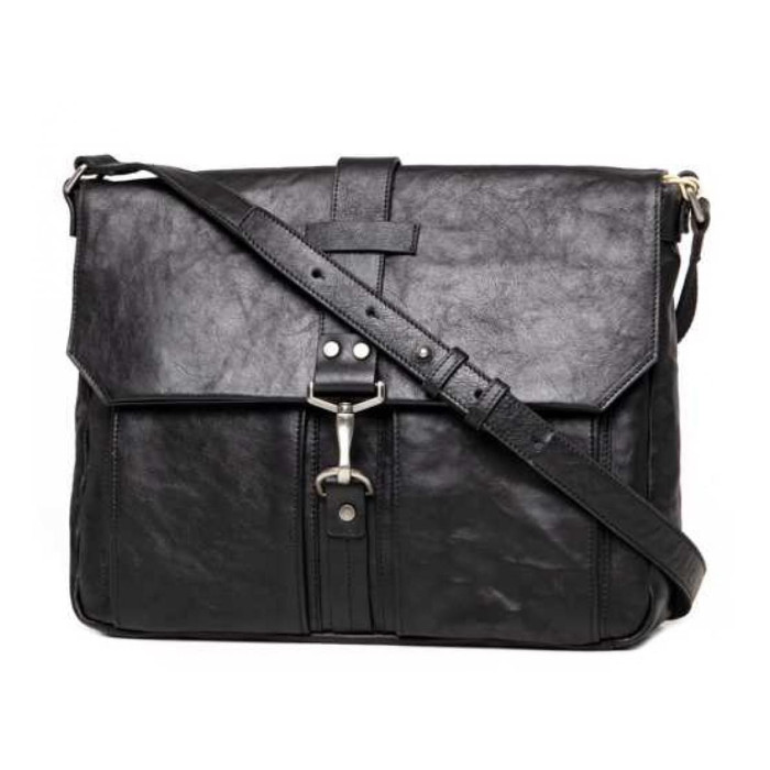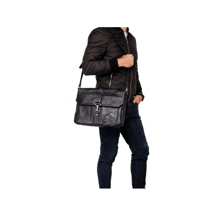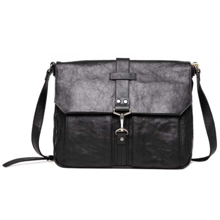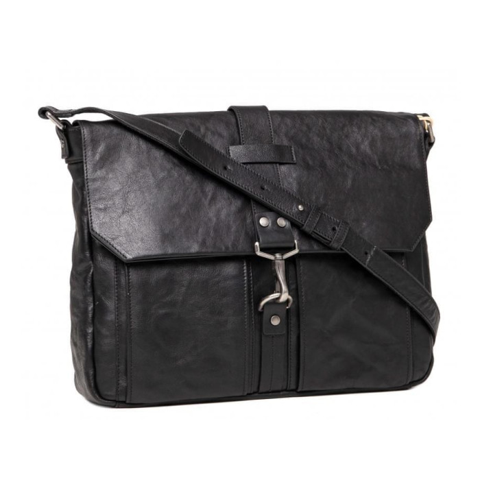 Статусний месенджер з гладкою телячої шкіри. Оптимальний розмір і оригінальне виконання. Сумка на плече горизонтального формату здатна розмістити планшет, макбук, щоденник і особисті речі. Під відкидним клапаном, який фіксується за допомогою карабіна, криється основне відділення на блискавці. Ремінь на плече також виконаний зі шкіри і регулюється по висоті за допомогою кобурних кнопок. З тильного боку розміщена містка кишеня на горизонтальній блискавці.