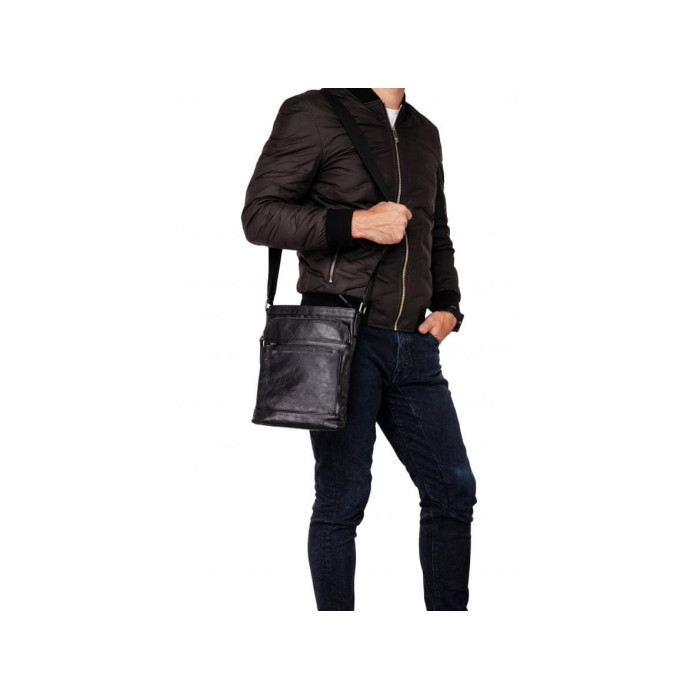 стиль: класика безкаркасна модель теляча шкіра гладка поверхня колір: чорний розміри (см): 21 х 28 х 3 одне основне відділення + кишені тип носки: на плечіОбираючи OlaBags.com.ua, Ви отримуєте: