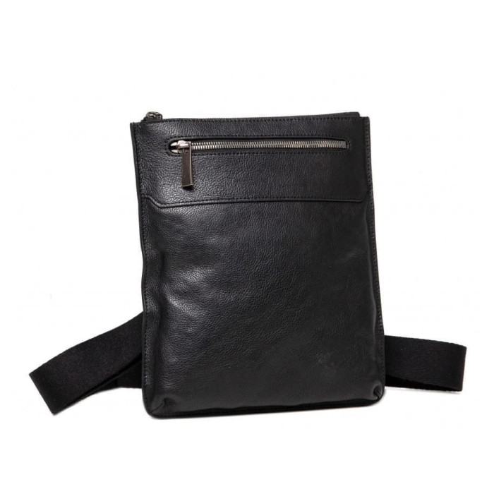 Чоловічий шкіряний месенджер в класичному виконанні з телячої шкіри з гладкою поверхнею. Компактна сумка прекрасно тримає форму, оптимальний розмір дозволяє розмістити всередині планшет, блокнот, портмоне або документи. Наплічна шлейка з щільного текстилю регулюється по довжині, надійно кріпиться до аксесуара і забезпечує максимально комфортне носіння сумки на плечі. Невелика кишенька на блискавці з лицьового боку для дрібниць, до яких Ви хочете отримувати швидкий доступ, наприклад для ключів або пропуску. Мінімум фурнітури, глянцева поверхня шкіри і благородний чорний колір роблять представлену модель фаворитом серед статусних аксесуарів Blamont.
