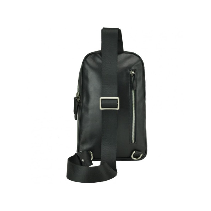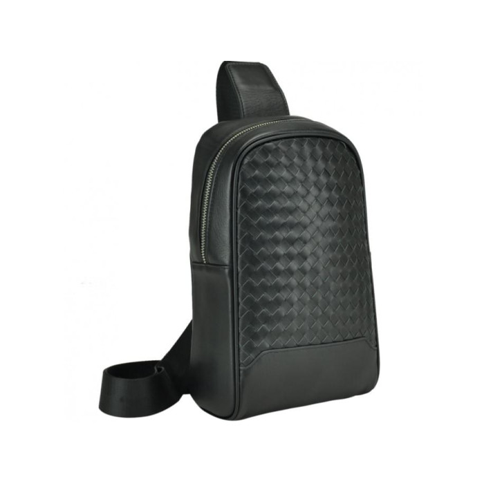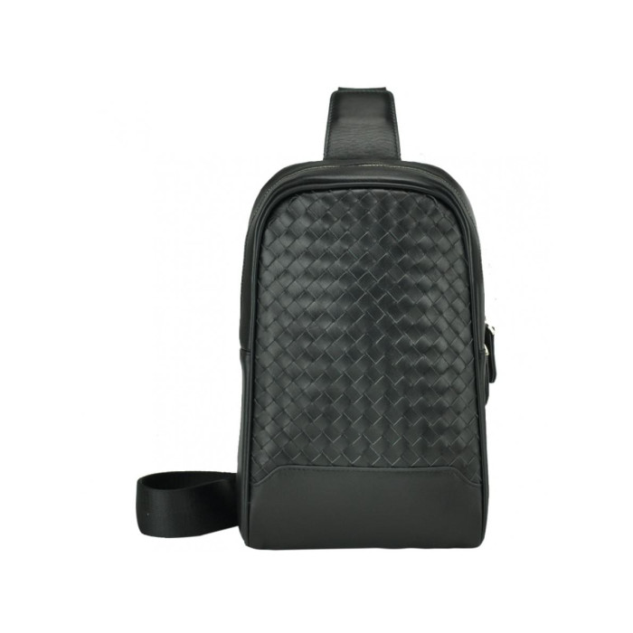 Чоловічий месенджер Tiding Bag пошитий з натуральної шкіри чорного кольору. Модель має сучасну плетену вставку, яка додає аксесуару свіжості. З тильного боку у месенджера є вертикальна кишеня на блискавці, куди можна покласти документи, смартфон. Основне відділення закривається на блискавку і має всередині безліч кишень. Шлейка месенджера регулюється по довжині.