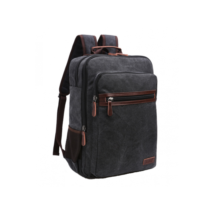 Чоловічий рюкзак Tiding Bag 8815A пошитий з міцної тканини канвас чорного кольору. Дана тканина відрізняється легкістю в догляді, витривалістю і стійкістю до вологи. Основне відділення закривається на блискавку. У ньому є невелика кишеня за змійці і відсік з фіксатором для ноутбука. Кишені з зовнішньої сторони дають можливість тримати потрібні речі завжди під рукою. Є шкіряна коротка ручка, укріплена текстилем, і тканинна петелька для зручного використання. Шлейки регулюються по довжині.