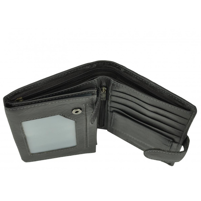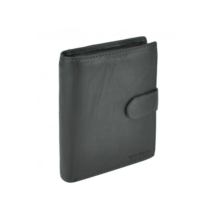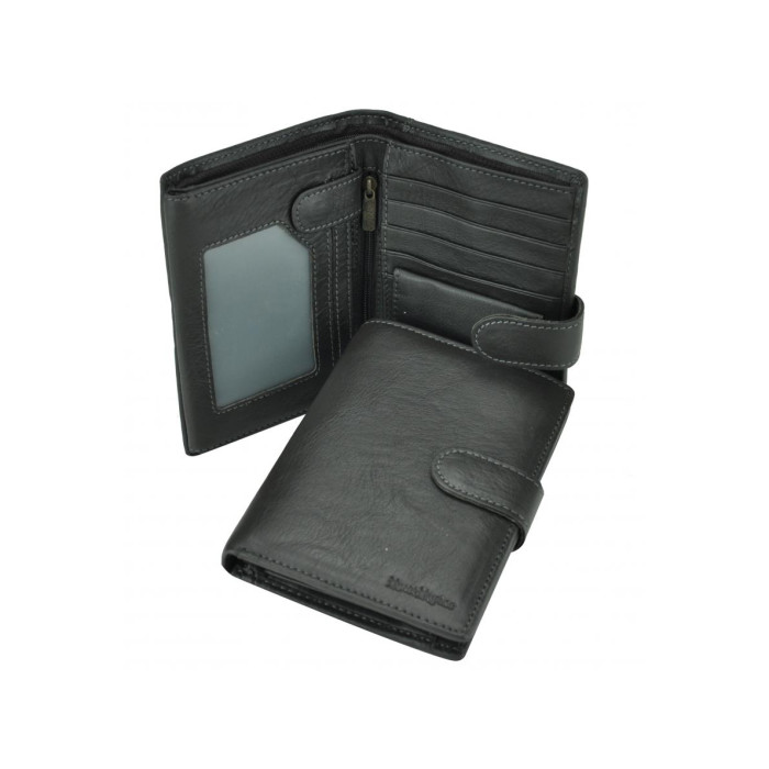 Стильне чоловіче портмоне з м'якої телячої шкіри з зернистою поверхнею. Гаманець вертикального формату відмінно тримає форму, має безліч слотів для пластикових карт, відсік для фото,монетницю на блискавці, додаткову кишеньку закритого типу, місткі відділення для купюр, одне з яких на блискавці. Портмоне подвійного складання закривається за допомогою кнопки.