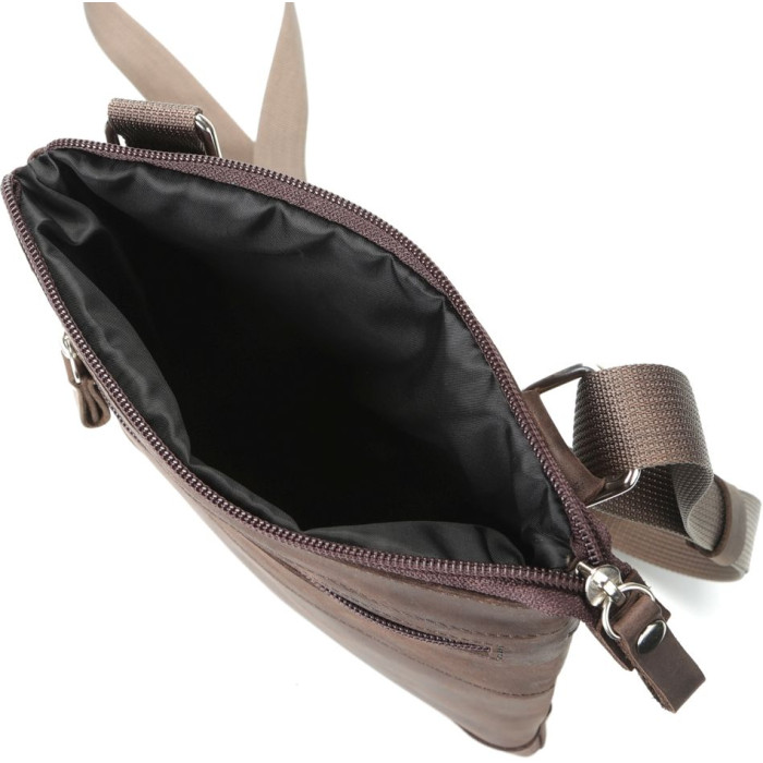 Оригінальна сумка-планшет, від українського виробника SHVIGEL, поєднує в собі простоту і зручність. Сумка виконана з натуральної винтажной шкіри високої якості, має одне велике відділення, яке закривається на блискавці і невелика кишеня на блискавки.