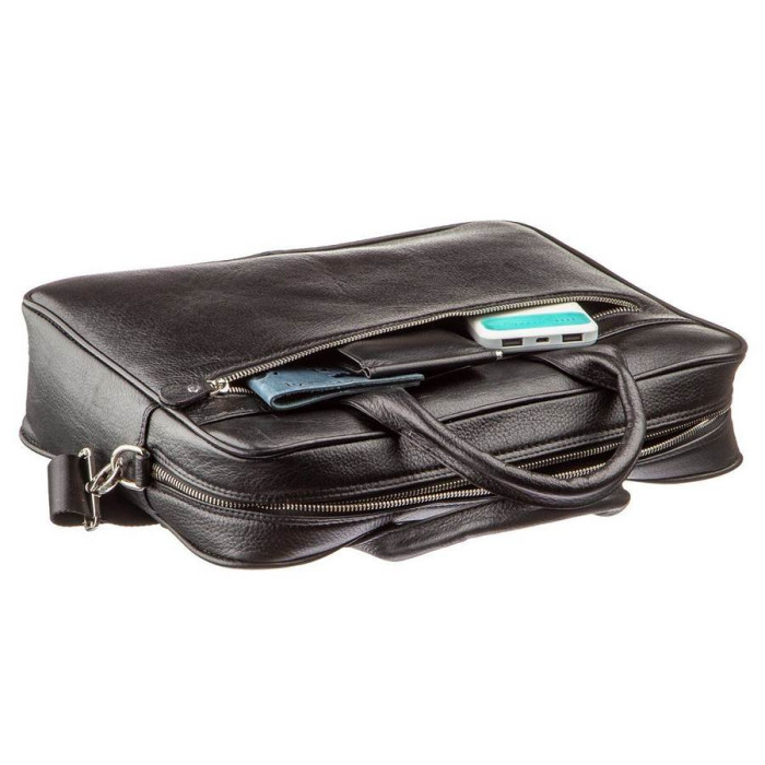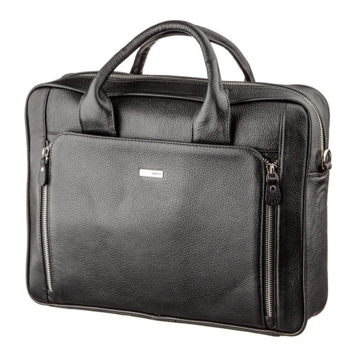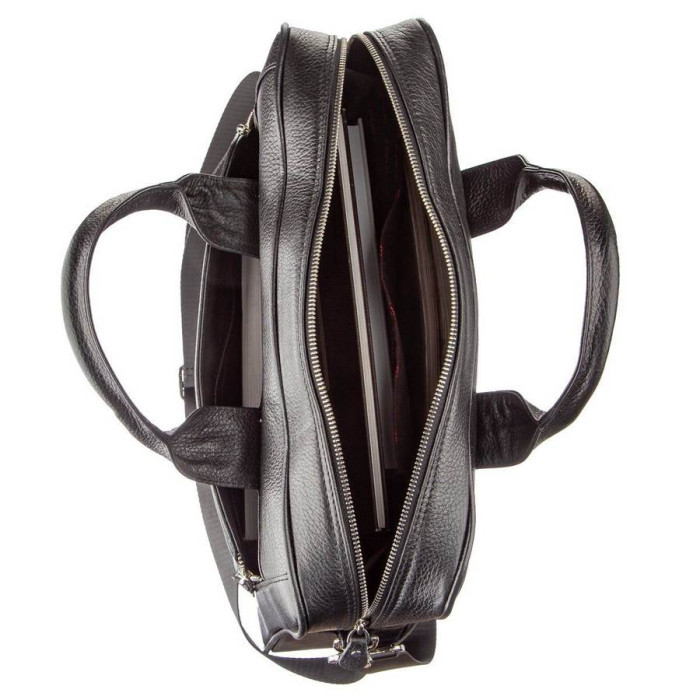 Містка ділова сумка для роботи, зустрічей або відряджень. Сумка має оптимальний розмір, якщо ви носите з собою документи формату А4 і ноутбук. Така сумка додасть більше впевненості в ваш стиль і додасть завершеності вашому образу. Виріб оснащений всім необхідним функціоналом для комфортного життя. По краях сумка прошита рівною чорною строчкою і доповнена якісною металевою фурнітурою сріблястого кольору. Аксесуар упакований в тканинний чохол, що захищає його від забруднень і вологи.
