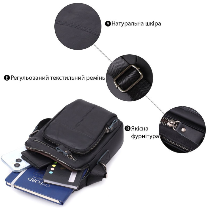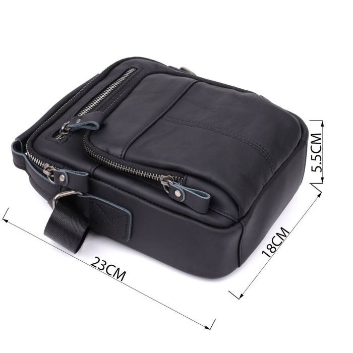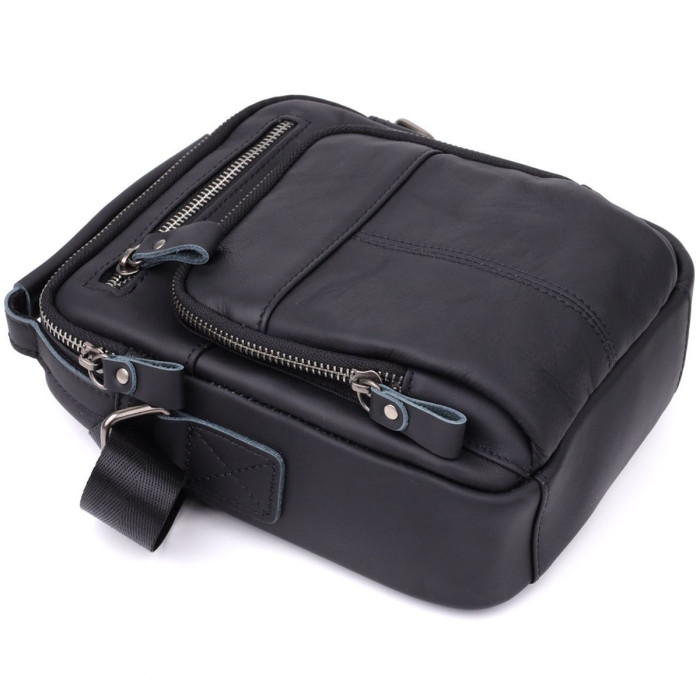 Чорна чоловіча сумка з матової натуральної шкіри - це практичний та стильний аксесуар, створений для тих, хто цінує зручність, стриману естетику та якість матеріалів. Завдяки універсальному дизайну сумка органічно впишеться в діловий гардероб, повсякденний образ або міський стиль. Вона стане надійним супутником протягом дня, дозволяючи завжди тримати необхідні речі під рукою і виглядати елегантно.