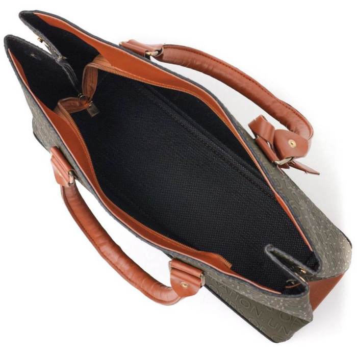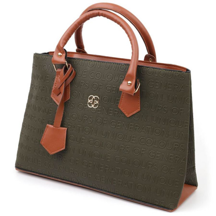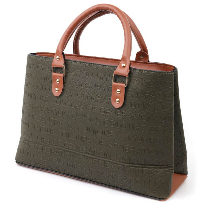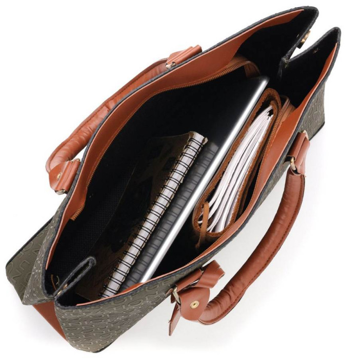 Містка ділова сумка з буквеним тисненням, горизонтального типу в комбінації оливкового та коричневого кольору. Сумка дуже якісна і приємна на дотик. Сумка має стильний дизайн. Аксесуар виглядає презентабельно та підійде як під діловий, так і повсякденний образ. Рекомендуємо вам цю сумку за доступною вартістю у нашому магазині.
