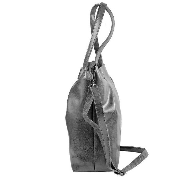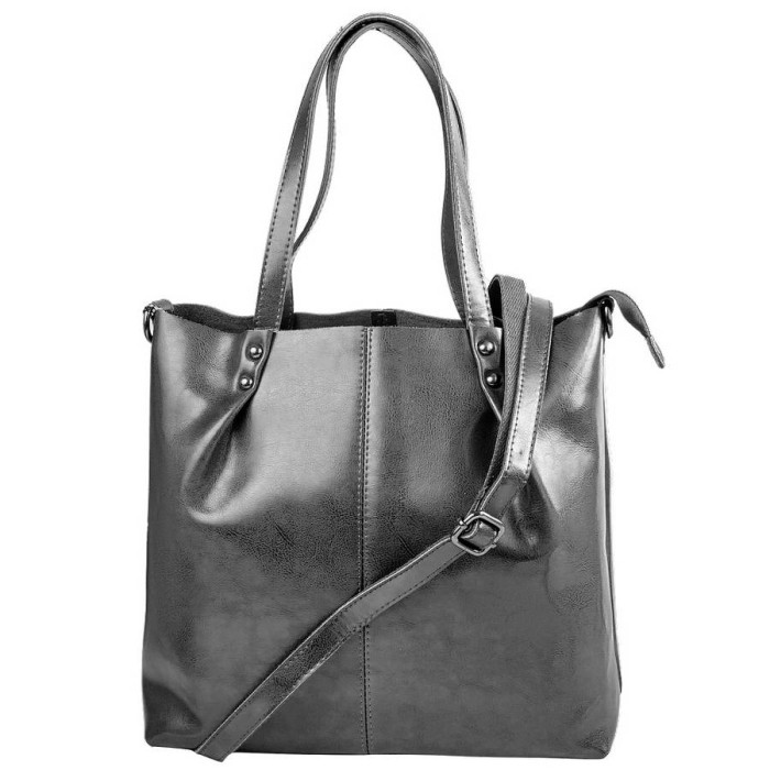 Розміри (X*Y*Z): 30*31*12 см. Модель має дві ручки для перенесення сумки в руці або на згині ліктя. Їх довжина становить 49 см, а висота від крайньої точки до ручки сумки – 21 см. В комплекті знімний плечовий ремінь. Його довжина регулюється (максимально - 127 см). Матеріал підкладки: тканина. Матеріал виробу: шкіра. Колір: сірий. Колір фурнітури: чорне срібло. Кількість основних відділень: 2. Всередині є кишеня на блискавці, дві накладних кишені і кишеня-перегородка на блискавці. Аксесуар придатний для носіння в руці, на плечі, через плече, на лікті. Сумка закривається за допомогою блискавки. Документи формату А4 поміщаються у виробі. Виріб упаковано в поліетиленовий пакет. Країна походження ТМ ETERNO - Україна, а країна-виробник - Китай. Гарантія: 3 місяці.