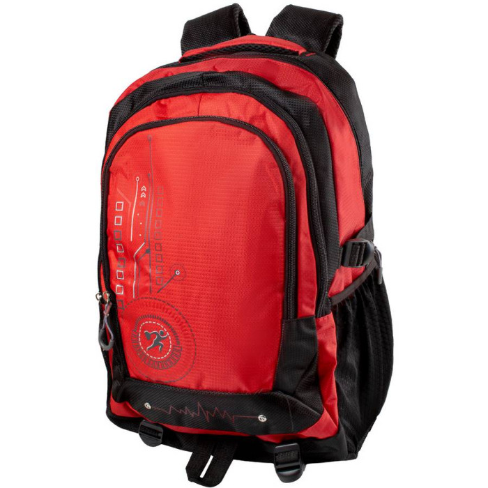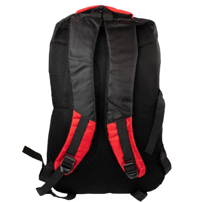 Тип конструкції: м'який рюкзак. Спинка рюкзака виконана з щільного, але при цьому гнучкого перфорованого матеріалу, що забезпечує ідеальну вентиляцію повітря. Кількість основних відділень: 2. Всередині рюкзак має накладну кишеню. Додаткові відділення: 1. Рюкзак оснащений двома боковими прорізними кишенями з сіткою на гумках. Виріб має 4 компресійні стяжки, які служать для зміни обсягу моделі і кріплення/фіксації різних предметів (наприклад, каремат або килимка для йоги). Плечові лямки мають анатомічну форму. Вони забезпечені щільною підкладою з поропласту, їх тильна сторона виконана з сітчастого матеріалу, який не перешкоджає вільній циркуляції повітря. Довжина лямок може регулюватися за допомогою пластикових пряжок. Також виріб має 2 окремі ручки, за допомогою яких аксесуар можна переносити в руці або повісити на гачок або вішалку. Модель можна використовувати в якості міського рюкзака, для активного відпочинку, для нетривалих поїздок та походів вихідного дня. Матеріал: поліестер. Колір: червоний, чорний. Колір металевої фурнітури: срібло. Зовнішні розміри рюкзака: 32 * 50 * 23 см. Об'єм: 37 л. Вага: 620 р. Основне відділення рюкзака закривається за допомогою блискавки з двома собачками. Виріб упаковано в поліетиленовий пакет. Документи формату А4 поміщаються в рюкзак. Країна походження торгової марки VALIRIA FASHION країна-виробник - Китай. Гарантія: 1 місяць.