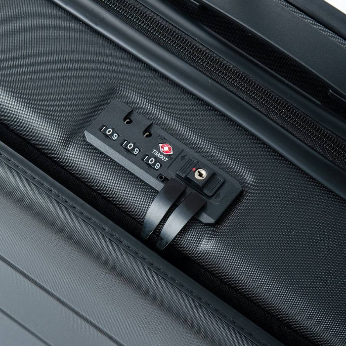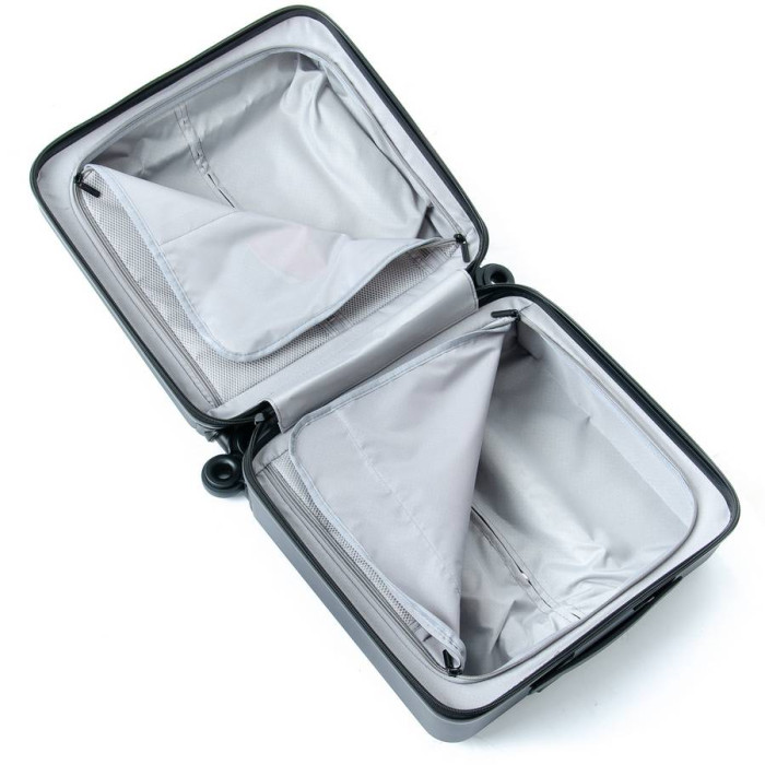 Закривається на блискавку з кодовим замком. Всередині валізи є дві перегородки на блискавці, на яких знаходяться кишені для дрібних речей.