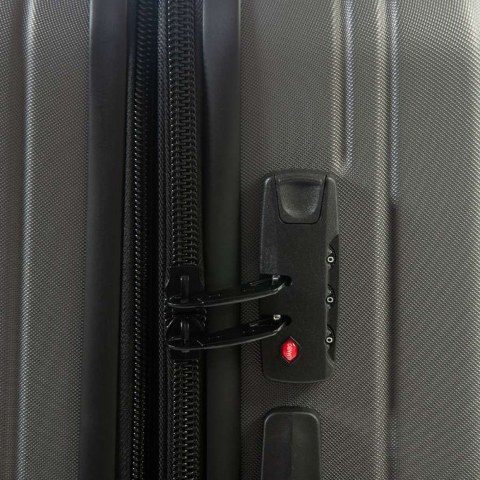 Пластикова валіза, виконана з удароміцного ABS пластику. Закривається на блискавку із кодовим замком. Об'єм валізи можна збільшити використовуючи блискавку розширення (збільшує глибину валізи на 3см). 4 поліуретанові подвійні колеса. Всередині валізи є подвійне відділення з кишенею-перегородкою на блискавці для дрібних речей та стяжки-гумки для фіксації багажу.