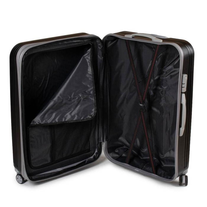 Пластиковий чемодан, виконаний з міцного ABS пластику. Закривається на блискавку з кодовим замком. Обсяг валізи можна збільшити використовуючи блискавку розширення (збільшує глибину валізи на 3 см.). 4 поліуретанових подвійних колеса. Усередині валізи є подвійне відділення з кишенею-перегородкою на блискавці для дрібних речей і стяжки-гумки для фіксації багажу.