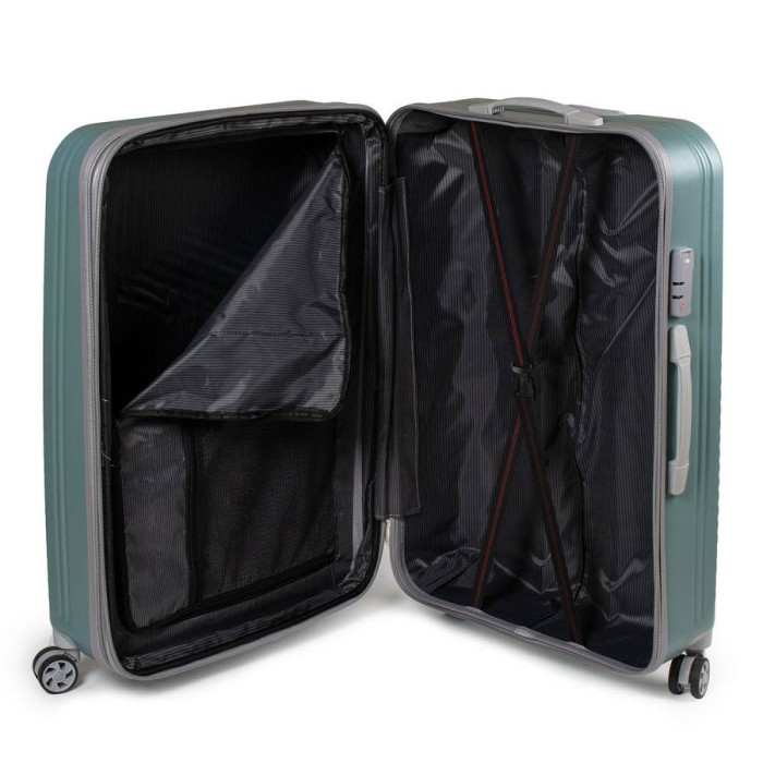 Пластиковий чемодан, виконаний з міцного ABS пластику. Закривається на блискавку з кодовим замком. Обсяг валізи можна збільшити використовуючи блискавку розширення (збільшує глибину валізи на 3 см.). 4 поліуретанових подвійних колеса. Усередині валізи є подвійний відділення з кишенею-перегородкою на блискавці для дрібних речей і стяжки-гумки для фіксації багажу.
