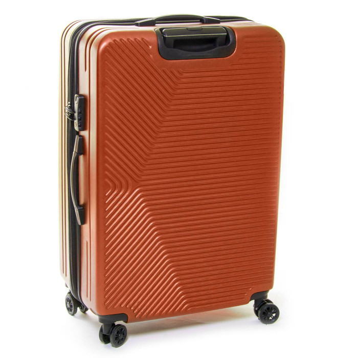 Пластикова валіза, виконана з удароміцного ABS пластику. Закривається на блискавку із кодовим замком. Об'єм валізи можна збільшити використовуючи блискавку розширення (збільшує глибину валізи на 3см). 4 поліуретанові подвійні колеса. Всередині валізи є подвійне відділення з кишенею-перегородкою на блискавці для дрібних речей та стяжки-гумки для фіксації багажу.