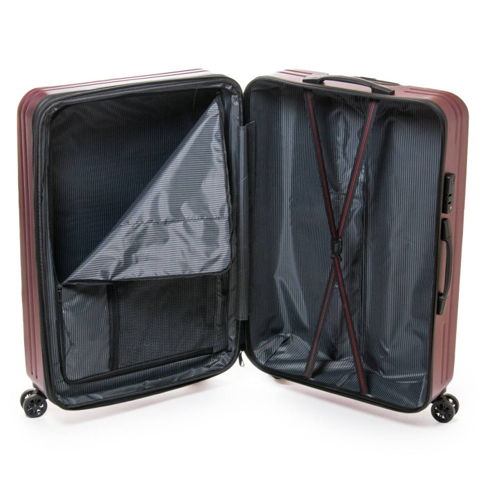 Пластикова валіза, виконана з удароміцного ABS пластику. Закривається на блискавку із кодовим замком. Об'єм валізи можна збільшити використовуючи блискавку розширення (збільшує глибину валізи на 3см). 4 поліуретанові подвійні колеса. Всередині валізи є подвійне відділення з кишенею-перегородкою на блискавці для дрібних речей та стяжки-гумки для фіксації багажу.