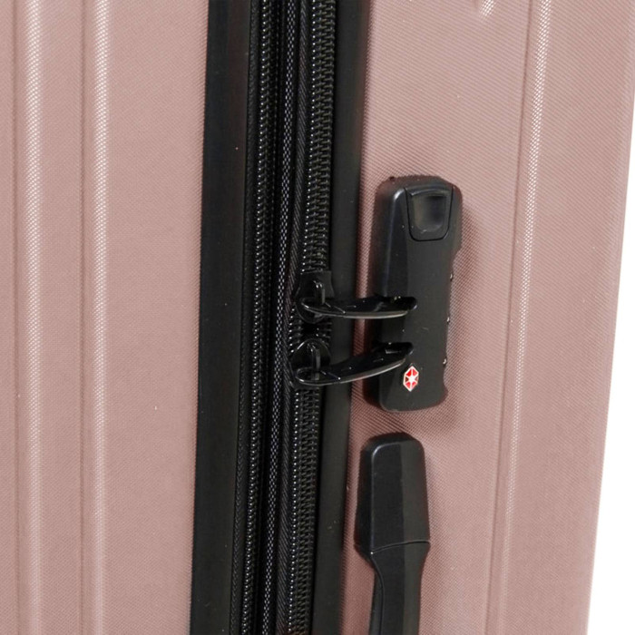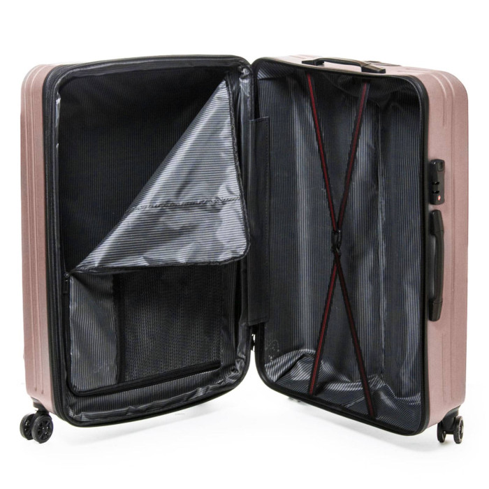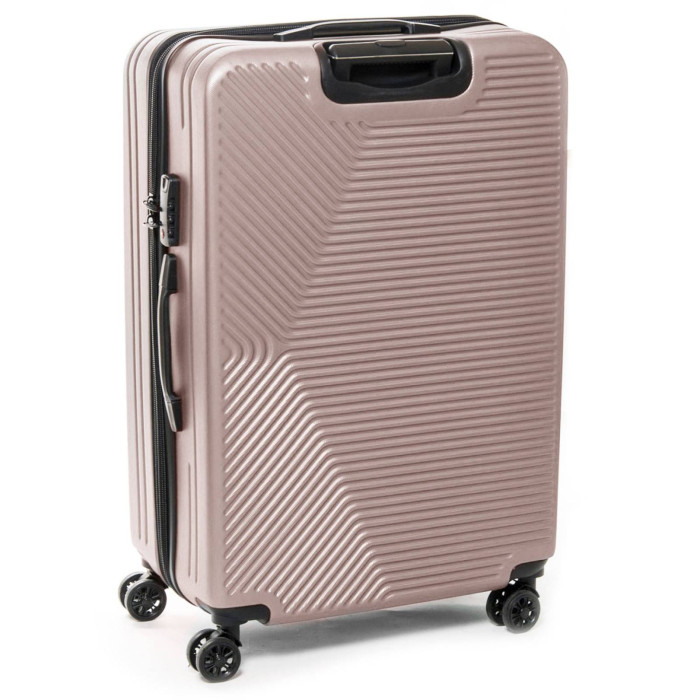 Пластикова валіза, виконана з удароміцного ABS пластику. Закривається на блискавку із кодовим замком. Об'єм валізи можна збільшити використовуючи блискавку розширення (збільшує глибину валізи на 3см). 4 поліуретанові подвійні колеса. Всередині валізи є подвійне відділення з кишенею-перегородкою на блискавці для дрібних речей та стяжки-гумки для фіксації багажу.