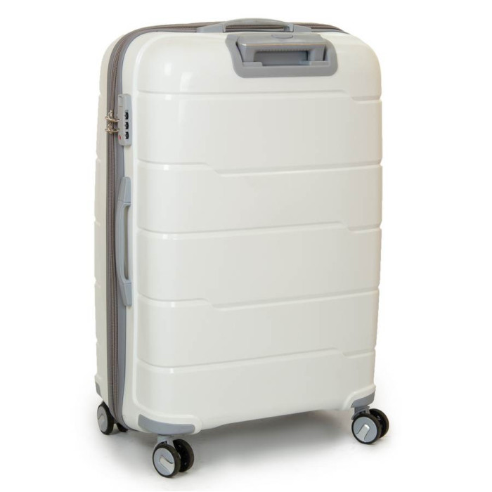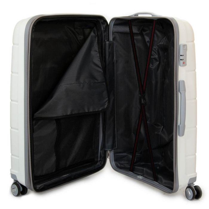 Пластикова валіза, виготовлена з удароміцного ABS пластику. Закривається на блискавку із кодовим замком. Об'єм валізи можна збільшити використовуючи блискавку розширення (збільшує глибину валізи на 3см). 4 поліуретанові подвійні колеса з гумовою зовнішньою частиною. Усередині валізи є подвійне відділення з кишенею-перегородкою на блискавці для дрібних речей та стяжки-гумки для фіксації багажу.