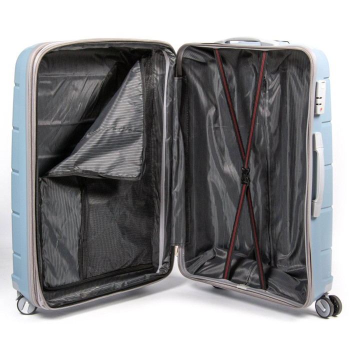 Пластикова валіза, виготовлена з удароміцного ABS пластику. Закривається на блискавку із кодовим замком. Об'єм валізи можна збільшити використовуючи блискавку розширення (збільшує глибину валізи на 3см). 4 поліуретанові подвійні колеса з гумовою зовнішньою частиною. Усередині валізи є подвійне відділення з кишенею-перегородкою на блискавці для дрібних речей та стяжки-гумки для фіксації багажу.