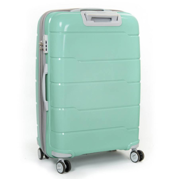 Пластикова валіза, виготовлена з удароміцного ABS пластику. Закривається на блискавку із кодовим замком. Об'єм валізи можна збільшити використовуючи блискавку розширення (збільшує глибину валізи на 3см). 4 поліуретанові подвійні колеса з гумовою зовнішньою частиною. Усередині валізи є подвійне відділення з кишенею-перегородкою на блискавці для дрібних речей та стяжки-гумки для фіксації багажу.