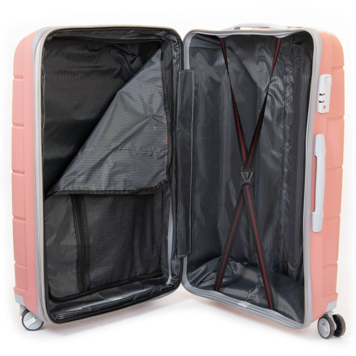Пластикова валіза, виготовлена з удароміцного ABS пластику. Закривається на блискавку із кодовим замком. Об'єм валізи можна збільшити використовуючи блискавку розширення (збільшує глибину валізи на 3см). 4 поліуретанові подвійні колеса з гумовою зовнішньою частиною. Усередині валізи є подвійне відділення з кишенею-перегородкою на блискавці для дрібних речей та стяжки-гумки для фіксації багажу.