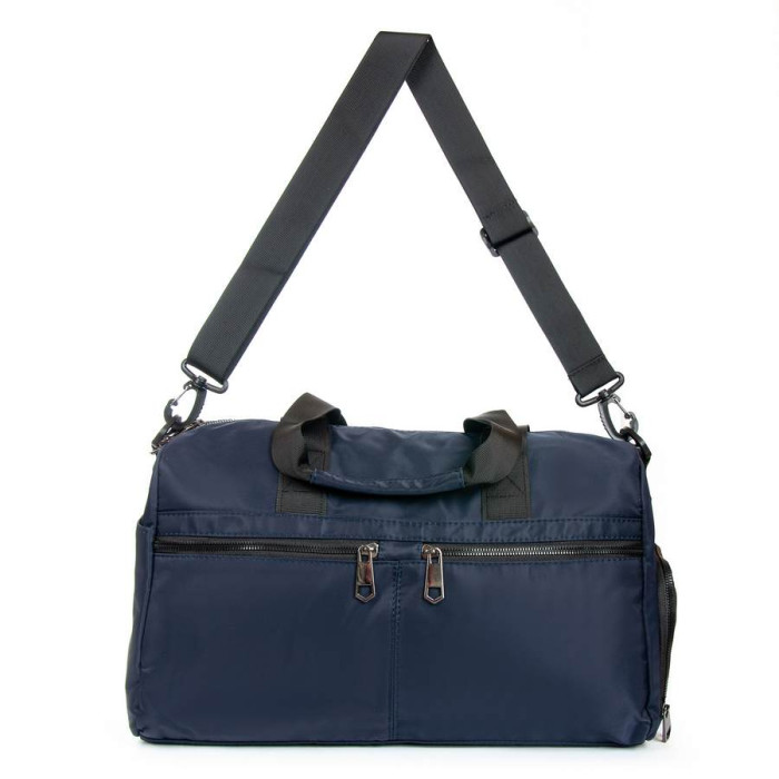 Одне основне відділення, закривається на блискавку. Усередині відділення є бічна кишеня на блискавці та відкрита подвійна кишеня. На торцях сумки розташовані кишені: одна на блискавці для взуття і друга відкрита плоска. На фасаді є дві місткі кишені на блискавці. На зворотному боці сумки є кріплення на ручку валізи.