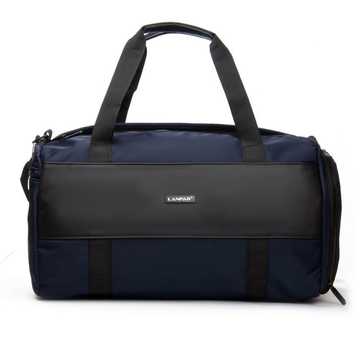 Чоловіча дорожня/спортивна сумка Lanpad. Одне відділення, закривається на блискавку. Всередині відділення є кишеня на блискавці і подвійна відкрита кишеня. На зворотному боці розташована велика кишеня на блискавці з герметичною підкладкою. На торцях сумки знаходяться кишеня для взуття і кишеня на блискавці для речей.