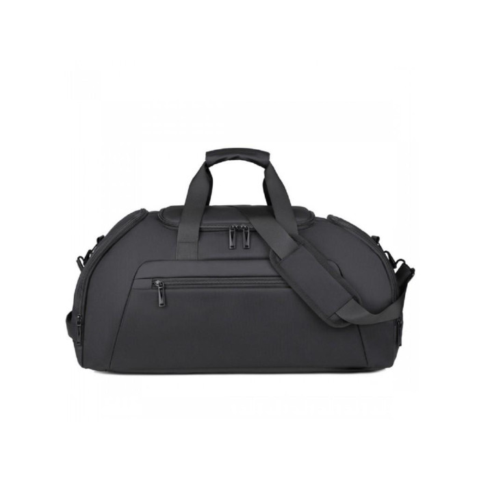 Сумка дорожня-рюкзак Confident TB8-T18A пошита із міцної чорної тканини, з водовідштовхуючими властивостями.