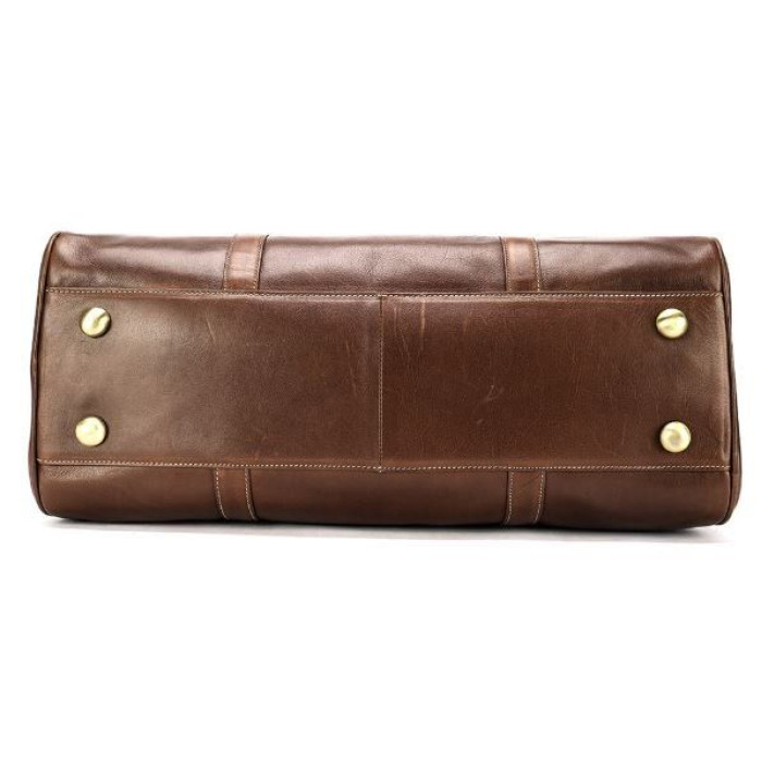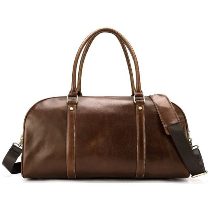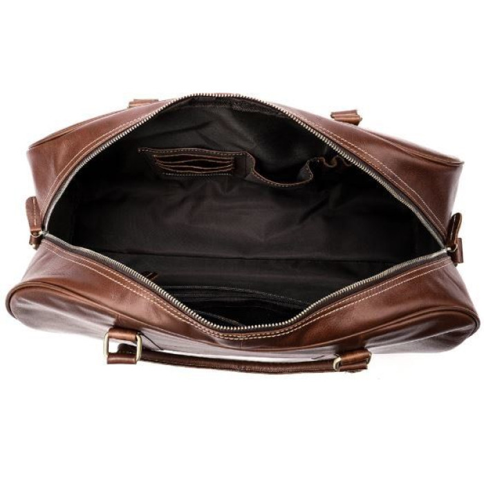 Вмістка дорожня сумка з натуральної шкіри. Аксесуар закривається на блискавку. Сумку ви можете носити як в руках так і на плечі. Сумка відмінно підійде в якості ручної поклажі або в тренажерний зал. Модель прошита по краях світлою ниткою. Сумка приємна на дотик і має оригінальний колір. Аксесуар доповнено міцною золотистою фурнітурою в дизайн виробу. Внизу сумки металеві ніжки, що захищає дно від подряпин і зносу. Буде чудовим подарунком для близької людини.