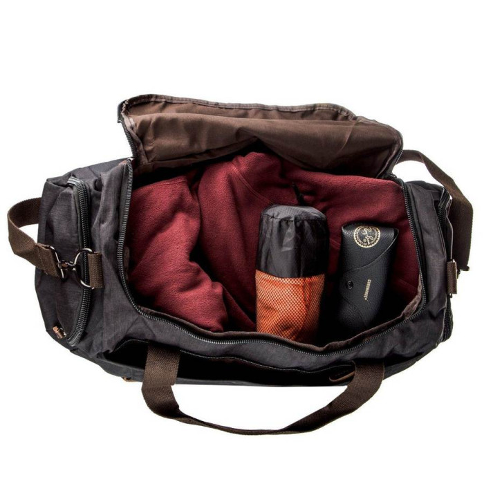 Практична текстильна дорожня сумка. Модель також підійде для занять спортом. Відмінністю текстильної сумки є те, що вона важить легше, ніж шкіряна. Сумка легко стирається і зовсім не мазка. Модель має всі необхідні кишені для вашої зручності. Ви також можете носити сумку на плечі. Сумка стане ідеальним помічником в будь-яку подорож.