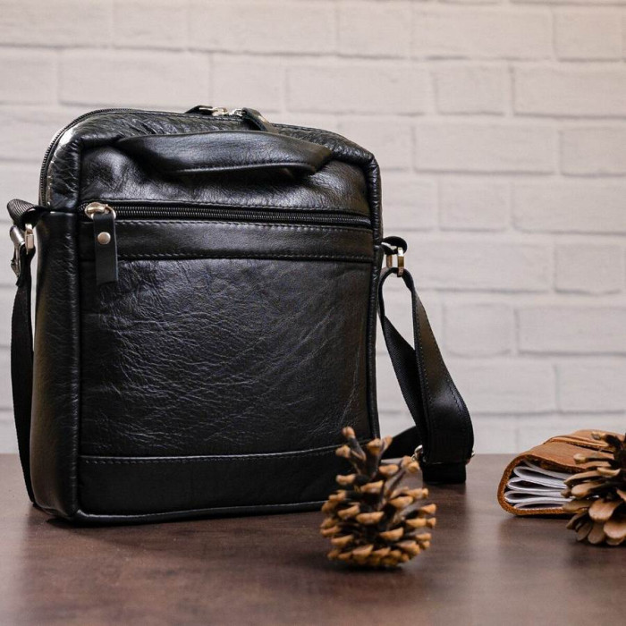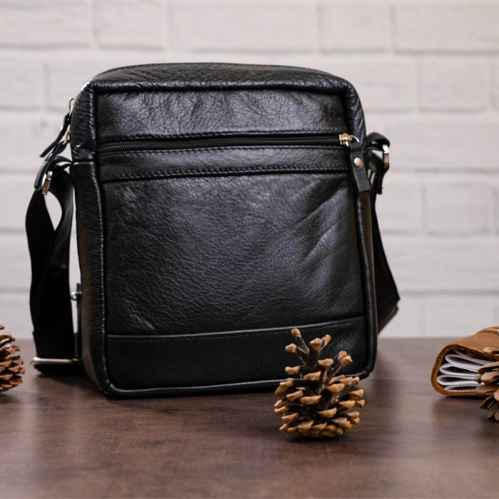 Чудова чоловіча сумка вертикального формату, виготовлена з натуральної шкіри чорного кольору. Вона відмінно доповнить як діловий, так і повсякденний стиль і стане Вашим улюбленим аксесуаром, завдяки своїй практичності.