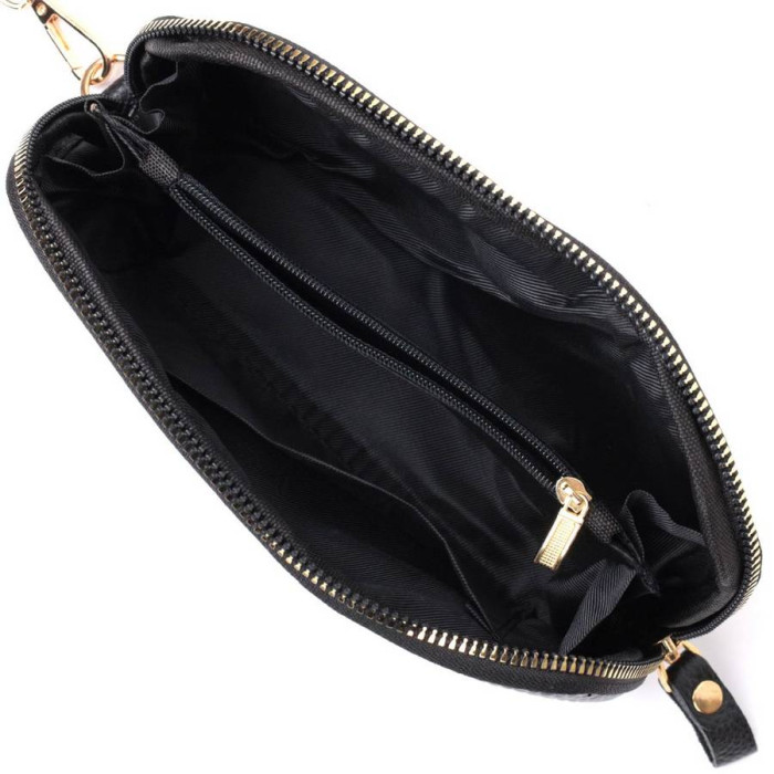 Зручна жіноча барсетка, яка займає мало місця і при цьому вміщає все необхідне для виходу з дому. Аксесуар складається з одного відділення, що закривається на блискавку, всередині якої знаходиться кишеня на блискавці та кишеня відкритого типу. Носити сумку можна в руці та на зап'ясті. В аксесуарі використано якісну фурнітуру кольору жовтого золота