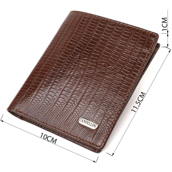 Невеликий вертикальний гаманець для чоловіків з натуральної фактурної шкіри з тисненням. Аксесуар має одне основне відділення, з перегородкою, в яке поміщаються купюри всіх номіналів, три відсіки для карток, монетницю на блискавці з розширювачем, дві прилеглі кишені. На зовнішній стороні металевий логотип виробника. Колір фурнітури – срібло. Шкіряний гаманець є справді потрібним подарунком на всі випадки життя.