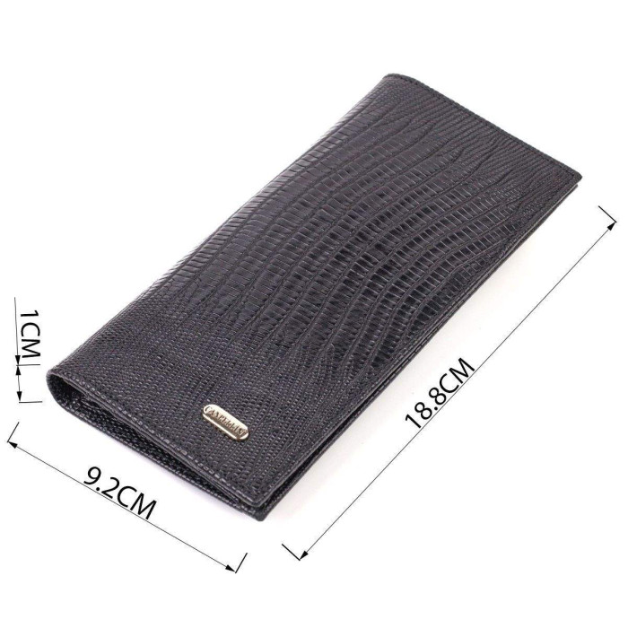 Функціональний чоловічий гаманець із натуральної фактурної шкіри. Аксесуар має одне основне відділення для купюр усіх номіналів, одинадцять осередків для карток, кишеню під сіточкою для пропуску, дві приховані кишені та монетницю на блискавці. Закривається аксесуар навпіл на магніти. На лицьовій стороні, у правому нижньому куті металевий логотип компанії виробника. Купуючи шкіряний аксесуар цієї фірми, собі або на подарунок, будьте певні, що він прослужить Вам не один рік.